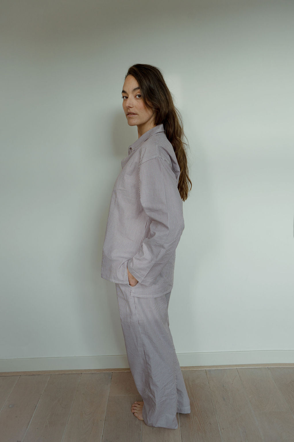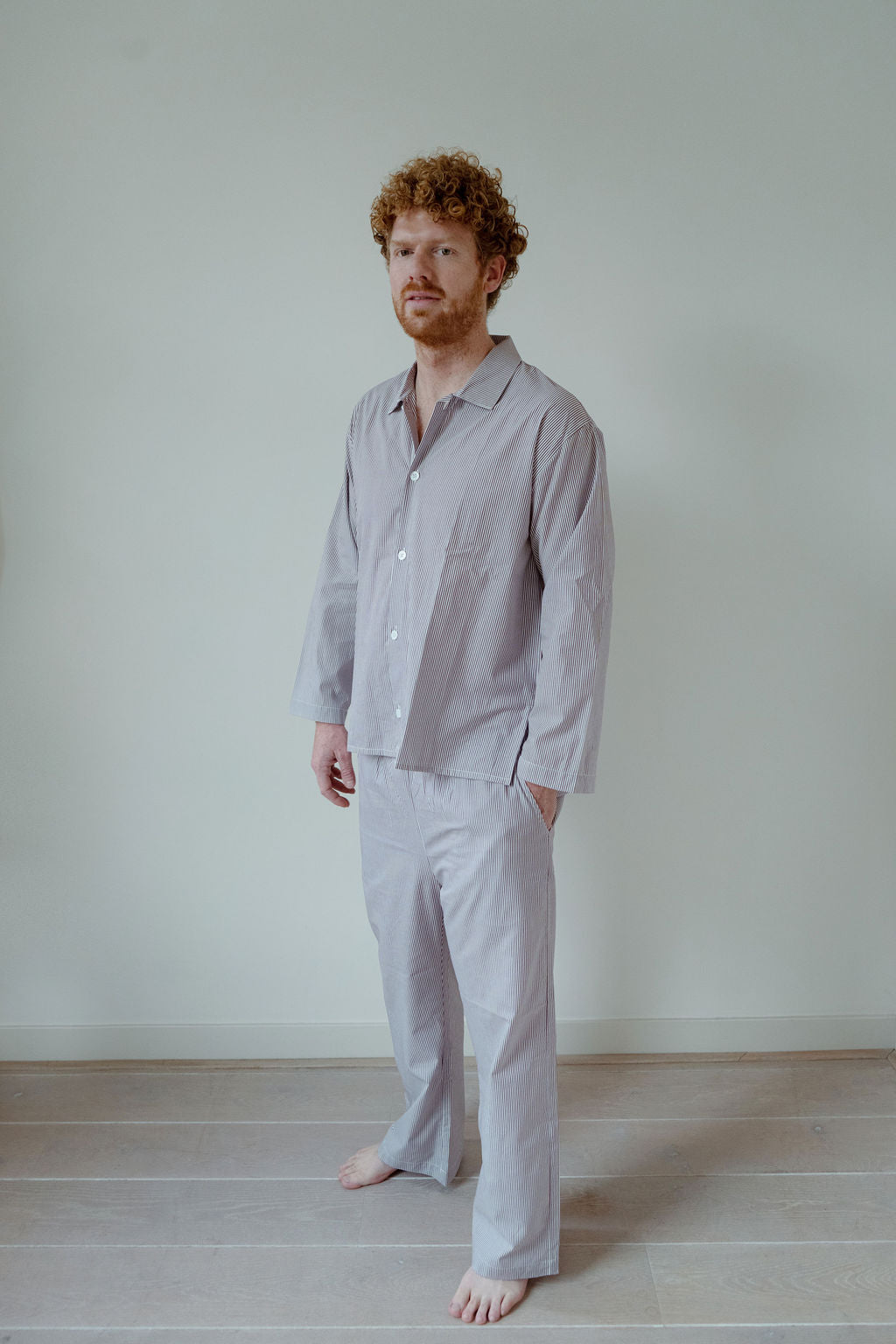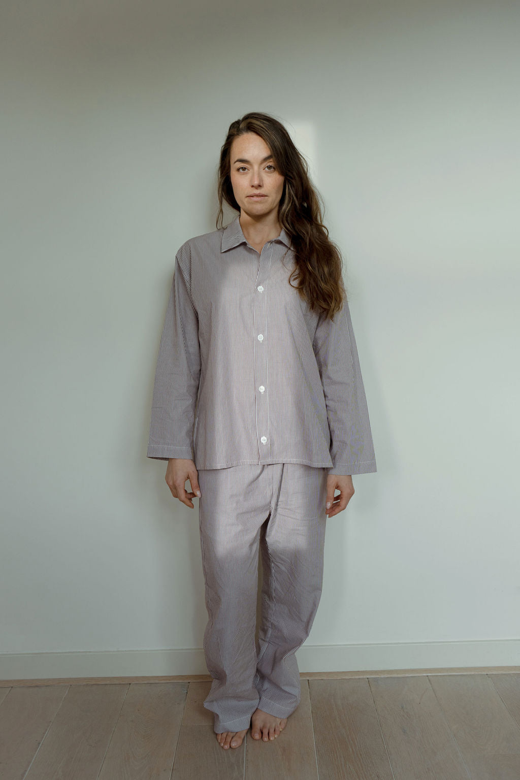 Drift into peaceful slumber with our premium 100% sustainable cotton pajama set, crafted for ultimate comfort and elegance. This classic two-piece ensemble features a relaxed-fit button-down top and matching drawstring pants, designed to provide the perfect balance of style and coziness.